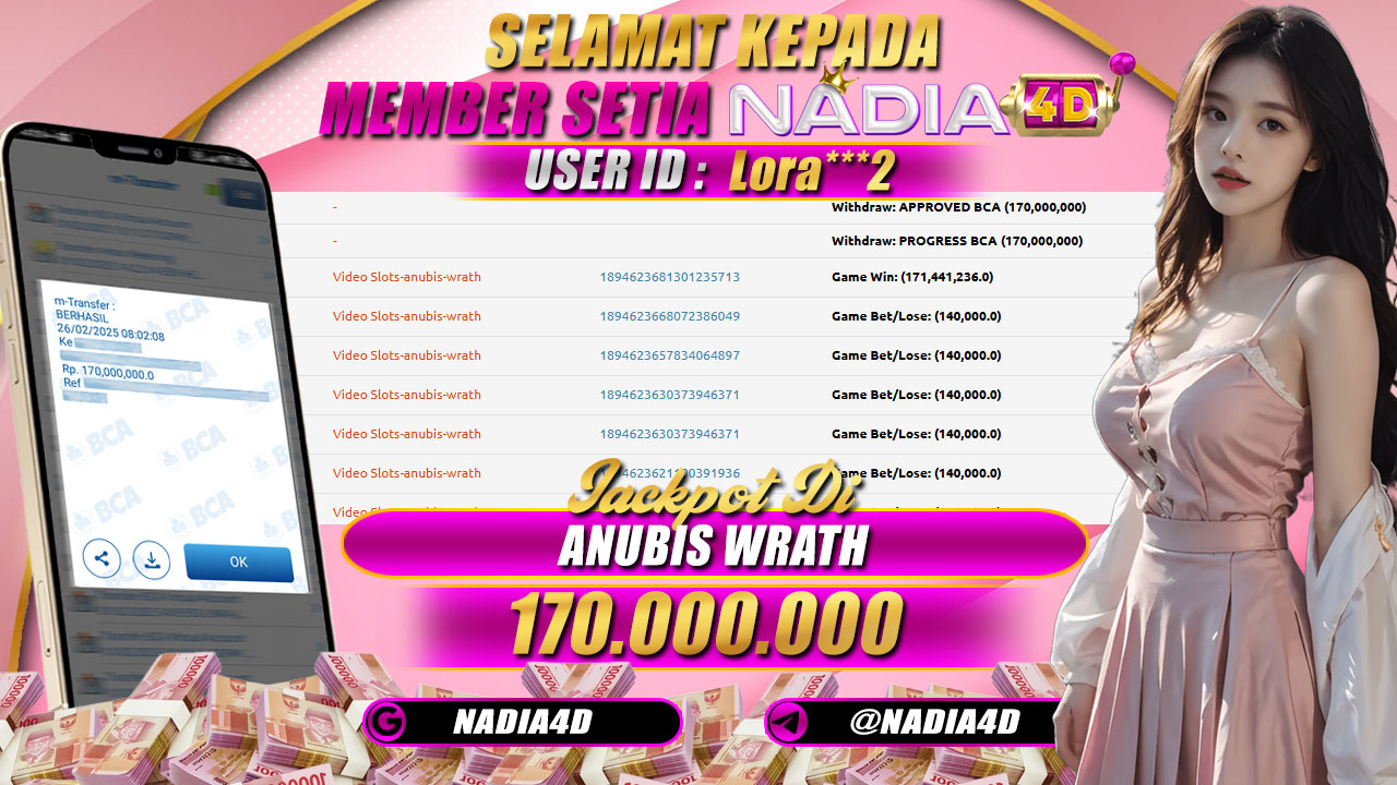 Publikasi jackpot yang kami tampilkan bertujuan agar member atau pemain yang belum pernah bermain bisa melihat bahwa bandar slot terpercaya seperti Nadia4D benar-benar membayar.